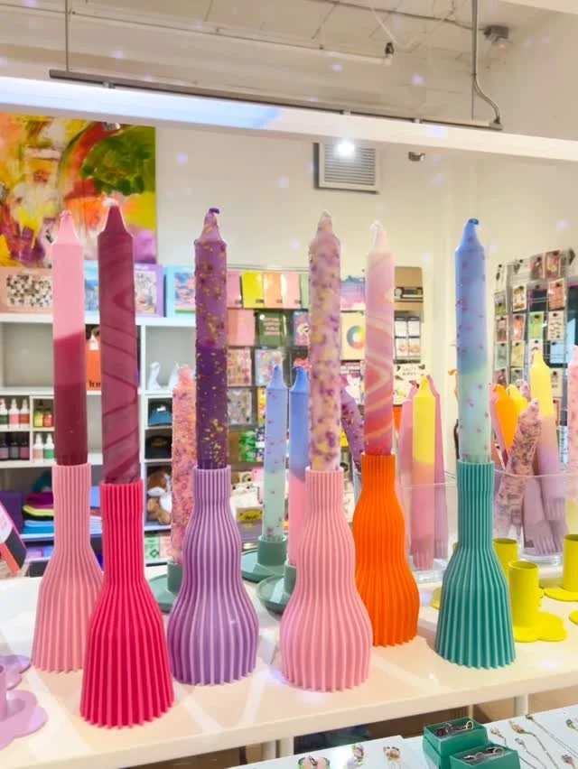 Upon entrance, you'll be greeted by a playful mural by local artist Takashi Iwasaki in vivid tones of tangerine, fuchsia, and marigold, and a little bit of sparkle. A few steps in, you'll be welcomed by Tara, and a passion for all things made with heart. The sky-high walls are crisp with beautiful accents and tastefully adorned with local art, and a wide array of high quality goods.